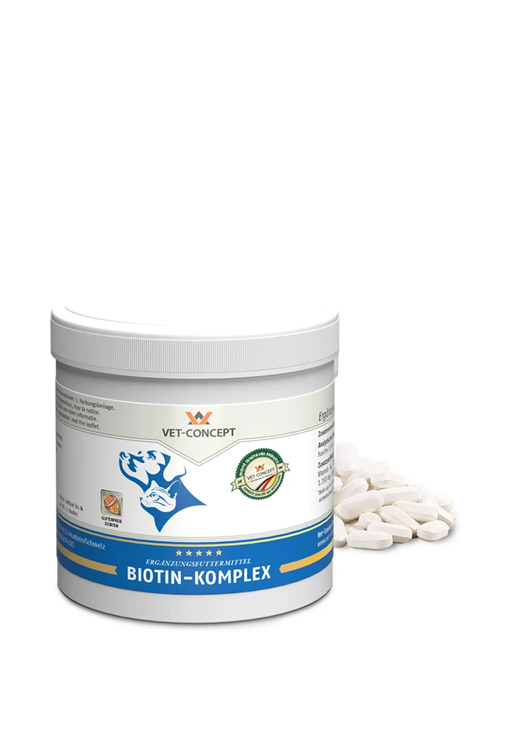 Biotin ist auch als Vitamin H bekannt – das Vitamin für Haut und Haar – ein lebensnotwendiger Nährstoff, den der Körper nur begrenzt speichern kann. Mangelerscheinungen zeigen sich meist in Form von Haarausfall. Auch ein glanzloses Fell, trockene Haut und brüchige Krallen können das Ergebnis eines Biotin-Mangels sein.
