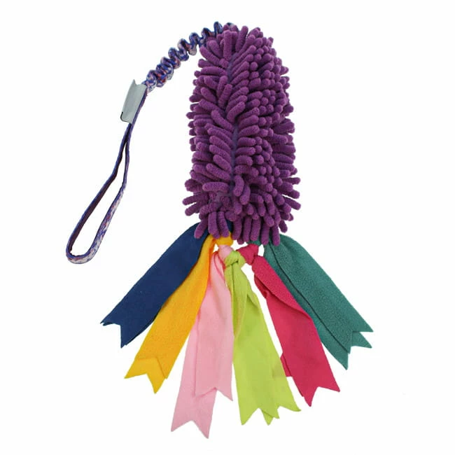 Motivationsspielzeug aus Mop und Fleece mit Bungeegriff.
