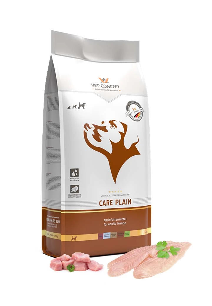 Eine bedarfsgerechte, vollwertige Ernährung sichert dem Seniorhund eine Versorgung mit allen wichtigen Nährstoffen. Kleine Hunderassen werden ab 10 Jahren zu den Senioren gezählt, große Rassen hingegen schon ab 7 Jahren. Ältere Hunde benötigen für den Erhalt ihrer Fitness und zur Schonung der inneren Organe einen geringeren, jedoch hochwertigen Fettanteil in der Nahrung, ein Plus an wertvollen Ballaststoffen und leicht verdaulichen Proteinen. Eine ideale Grundlage bietet qualitativ hochwertiges tierisches Protein. CARE PLAIN berücksichtigt optimal die Nährstoffbedürfnisse älterer Hunde. Die Rezeptur enthält nur ausgewählte Zutaten einheimischer Rohstoffe und einen hohen Gehalt an lebenswichtiger Linolsäure. Die Krokette fördert durch Form und Struktur die Kautätigkeit und den Zahnpflege-Effekt. CARE PLAIN ist auch zur restriktiven Fütterung, z. B. nach Kastration, zu empfehlen.