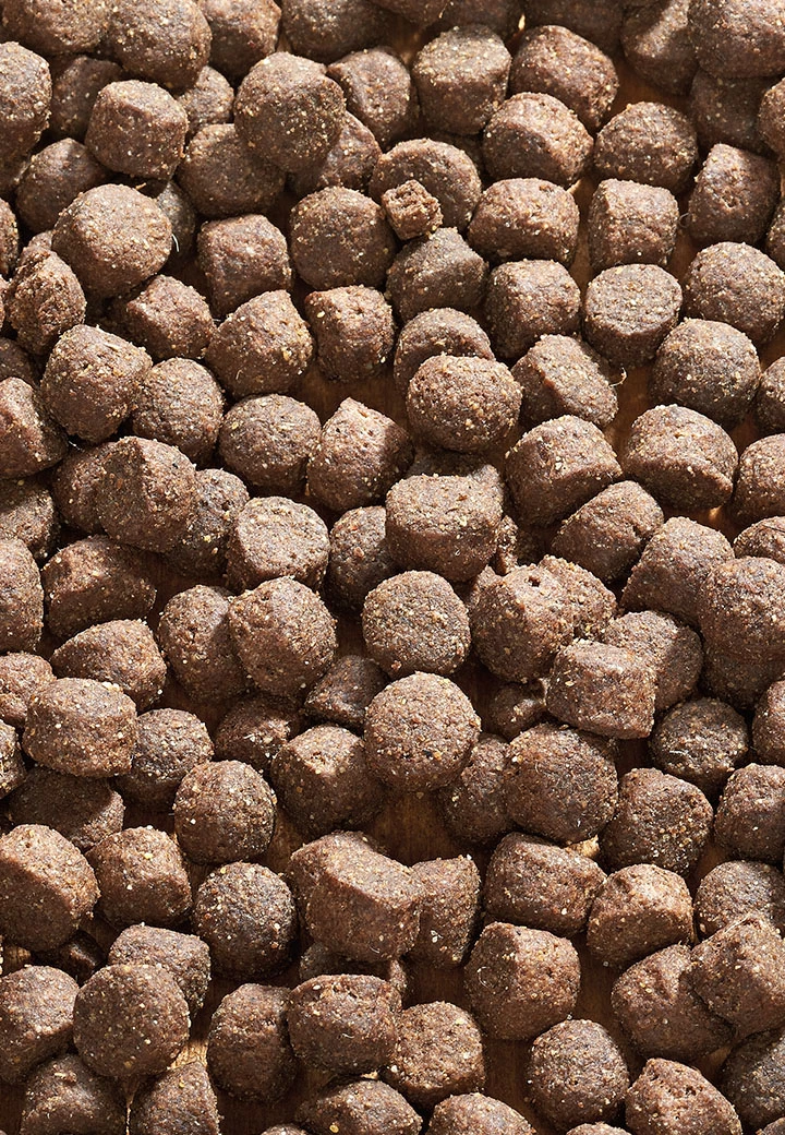Fleisch und tierische Nebenerzeugnisse (Geflügelfleischmehl, Kaninchenfleischmehl, Lammfleischmehl), Getreide (Mais, Reis), Öle und Fette, pflanzliche Nebenerzeugnisse (Rübentrockenschnitzel), Eier und Eierzeugnisse (Volleipulver), Mineralstoffe, Hefe*, Algen (Ascophyllum nodosum*), Saaten (Leinsamen), Kräuter*, Chicoréewurzel* (Quelle für Inulin) (0,1 %), *getrocknet