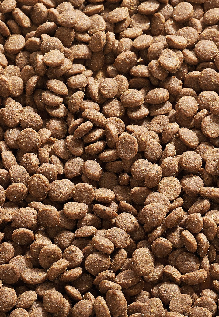 Fleisch und tierische Nebenerzeugnisse (Kaninchenfleischmehl), Getreide (Mais, Reis), Fisch und Fischnebenerzeugnisse (Lachsmehl), Öle und Fette, pflanzliche Nebenerzeugnisse (Rübentrockenschnitzel), Eier und Eierzeugnisse (Volleipulver), Mineralstoffe, Hefe*, Algen (Ascophyllum nodosum*), Saaten (Leinsamen), Kräuter*, Chicoréewurzel* (Quelle für Inulin) (0,1 %), *getrocknet