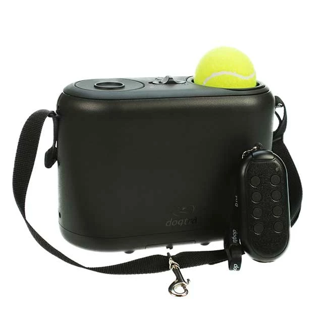 Der Dogtra Ball Trainer ist eine einzigartige Ballwurfmaschine für den Hundesport, die sowohl Bälle werfen, als auch nur herausfallen lassen kann. Per Handsender mit ca. 90 m Reichweite können bis zu 8 Geräte bedient werden (nach Zukauf weiterer Geräte). Der Dogtra Ball Trainer schießt Bälle ca. 1 m hoch (bei Benutzung eines Tennisballs). Für die Fallfunktion können bis zu 3 Bälle „geladen“ werden, deren Herausfallen dann einzeln ausgelöst werden kann.