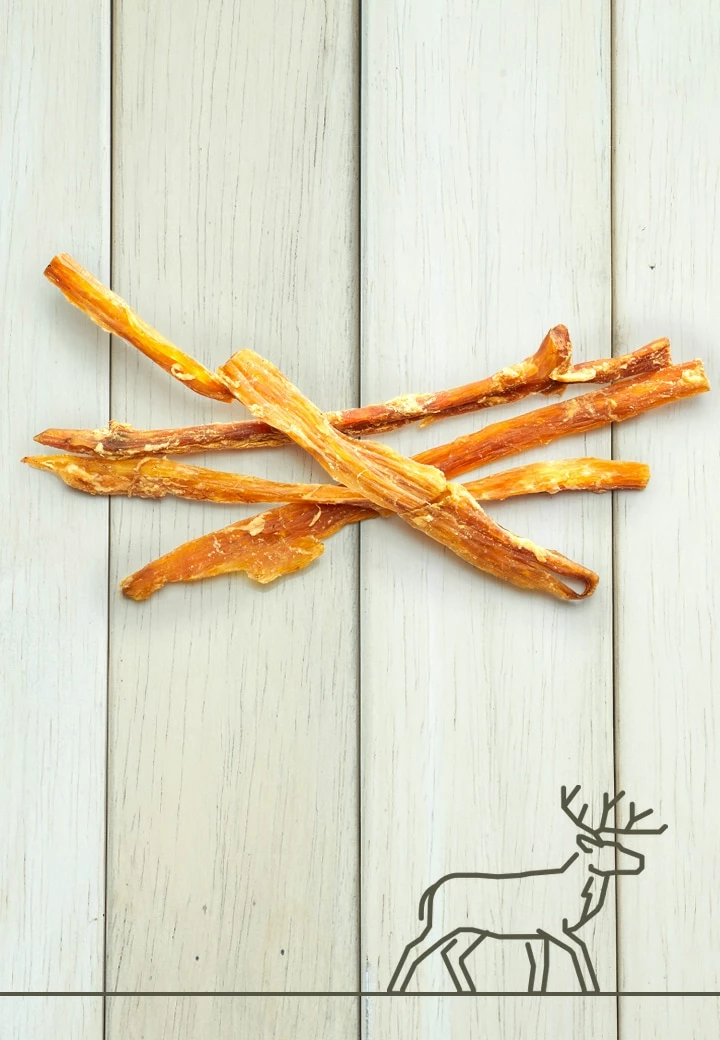 Der außergewöhnliche Geschmack gesunder Kauartikel vom Hirsch verwöhnt besonders naturbewusste Feinschmecker. Mit wertvollen Fleischanteilen, viel Biss und für die meisten Allergiker bestens geeignet.