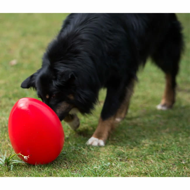 Dieses Spielzeug bringt viel Freude! Da der Hund dieses nicht richtig mit dem Maul greifen kann, muss er es mit der Schnauze anstupsen.