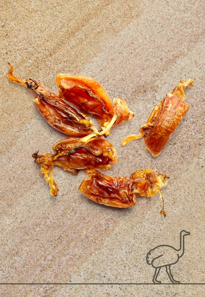 Eine Delikatesse, die selbst den verwöhntesten Vierbeinern gerecht wird. Straußenfleisch besticht durch sein intensives Aroma und ist kalorien- und cholesterinarm. Dafür bringen diese Kauartikel jede Menge Eiweiß mit sich, die unsere Hunde mit Energie versorgen und die Zahnpflege zu etwas ganz Besonderem machen.